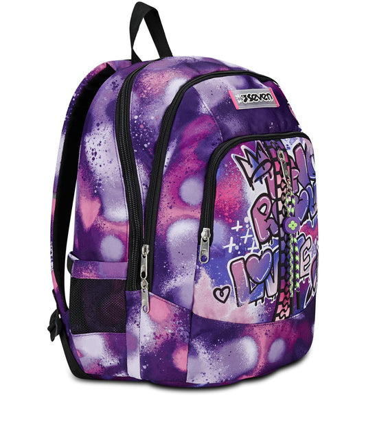 Seven Zaino Scuola Advanced, Viola, Bubble Street, Zaino Doppio Scomparto Con Supporto USB, Tasca Porta PC o Tablet, Tasca Porta Borraccia e Organizer, Zaino Scuole Medie e Superiori, Bambina Ragazza