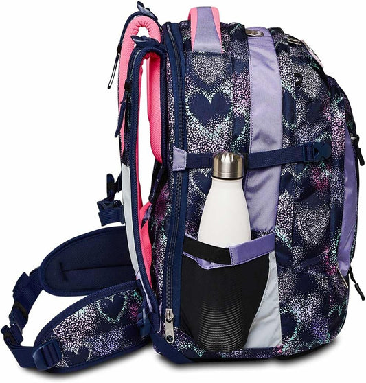 Seven Zaino Scuola UPDOWN TWICE - Viola - SHADING HEART - Zaino Multiscomparto, Maxi Capienza - Ergonomico, Sistema di Regolazione Altezza Spallacci - Tessuto 100% Eco-Material