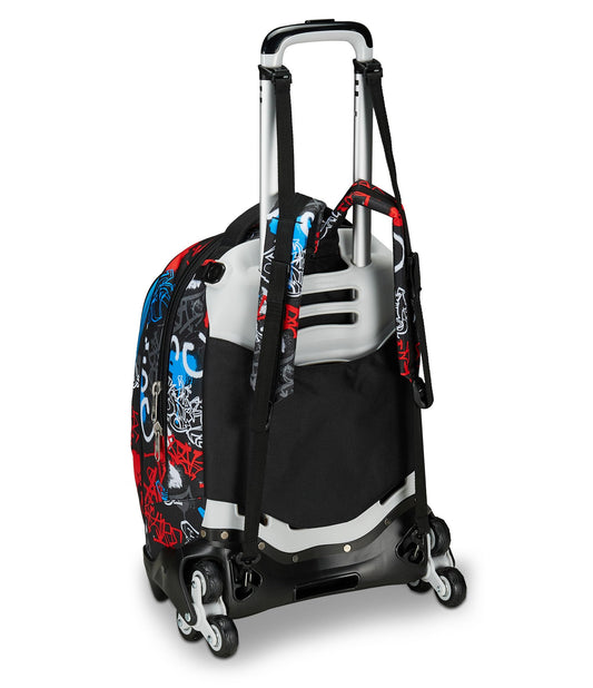 Seven Trolley Scuola Jack 3 Ruote, Nero Rosso, Half Street, 3 in 1, Triplo Uso, Zaino Con Carrello Sganciabile, Tasca Porta Borraccia e Crossover System, Zaino Scuola Viaggio, Bambino Ragazzo