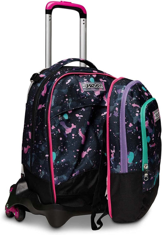 Seven S. p. a. Seven Trolley Scuola Sganciabile Jack 3 Ruote Detach, Viola, FLUO STRING GIRL, Triplo Uso, Zaino con Carrello Sganciabile, Maxi Capienza, Scuola & Tempo Libero, Bambine e Ragazze