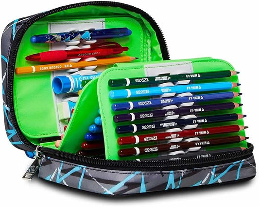 Mitama Astuccio Scuola 3 Scomparti, DOUBLE DIAMOND, con pennarelli, matite, pastelli ecc..