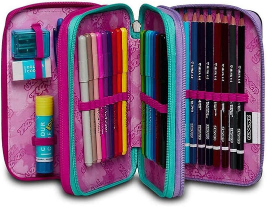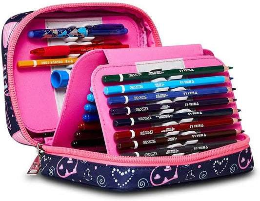 SJ GANG STYLE JAM GANG Astuccio Scuola, SPEED PAD, HARTLY MIX, Portapenne Monozip Totalmente Accessoriato, Plance Amovibili, Tessuto 100%