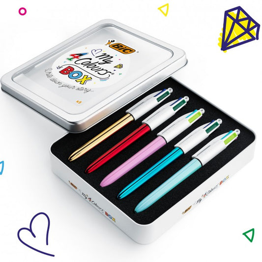 METAL BOX 5 PENNE SFERA 4 COLOURS MEDIUM BIC